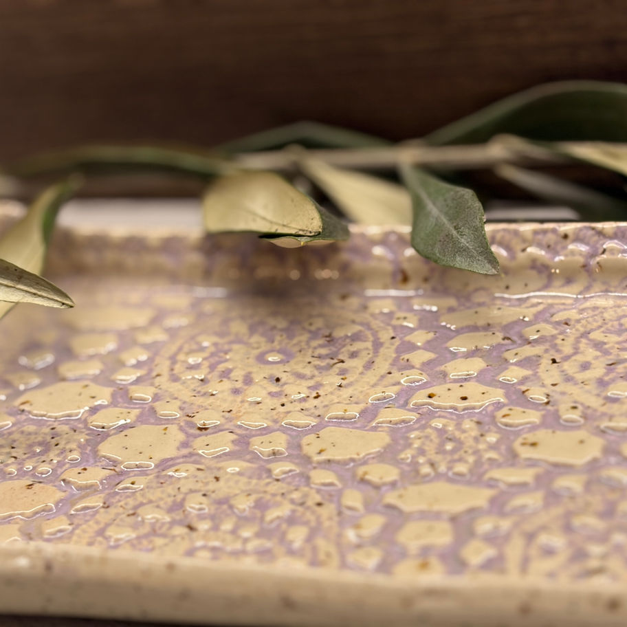 צלחת הגשה יוצאת דופן עם צבעים מיוחדים ועדינים של לבן שמנת וסגול