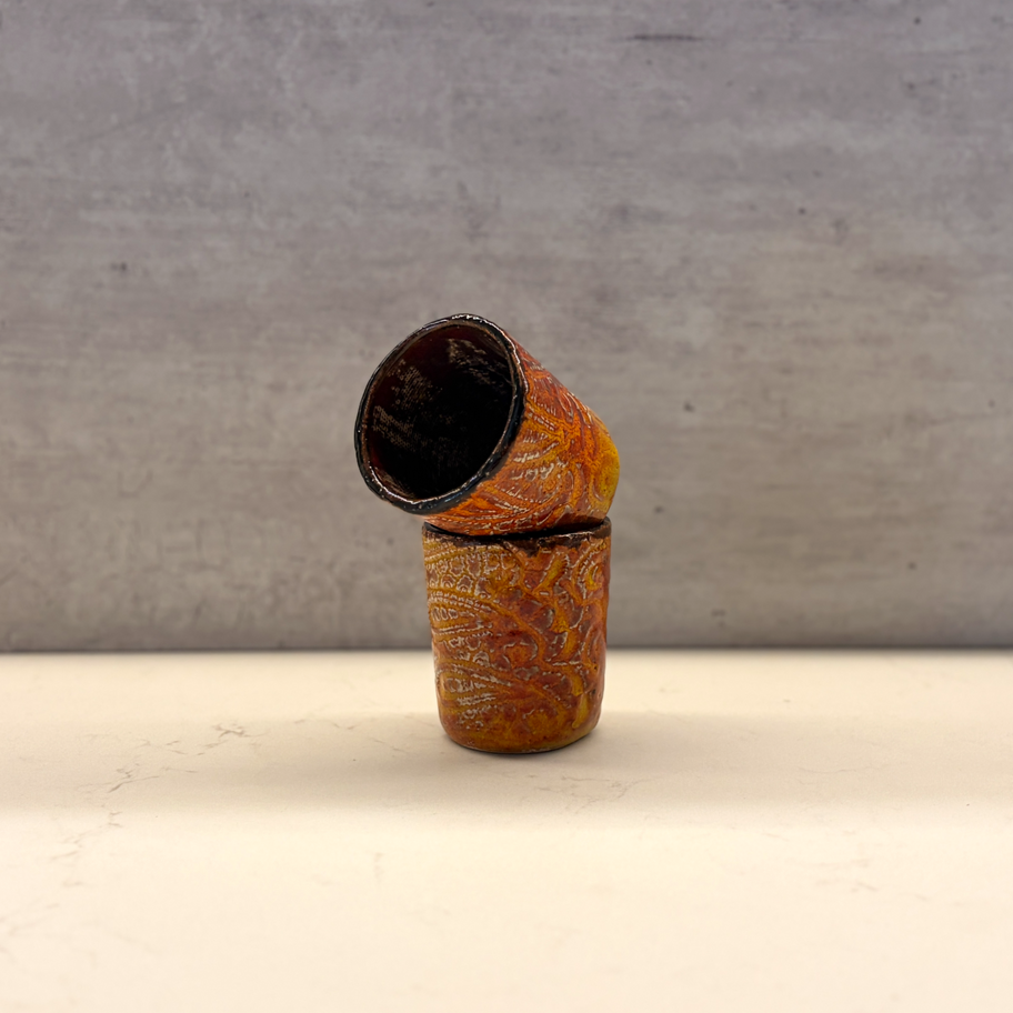 סדרת זוג כוסות אספרסו | תה בצבעים חמים של להבת אש